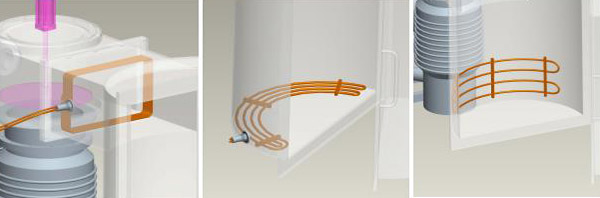 可根據(jù)用戶的具體要求設計專用的制冷盤管,制冷盤管通常有螺旋形、盤旋形、蛇形或其他形狀或有用戶自己選擇。常見盤管如下圖所示