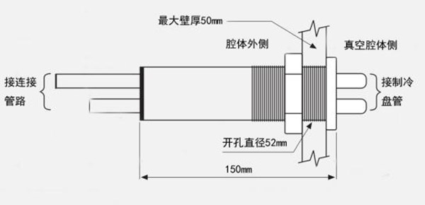標準輸入裝置,在腔體壁上開一個直徑52mm的孔,采用螺紋連接,O形密封圈密封,用戶也可定制輸入裝置