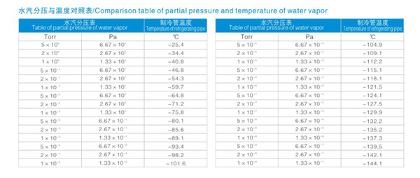 可在下表中查到你系統(tǒng)的極限壓力,根據(jù)該壓力找到同行右邊對應的溫度數(shù)值就是你所需的制冷盤管的表面溫度,這一溫度能提供90%的水汽捕集效率。